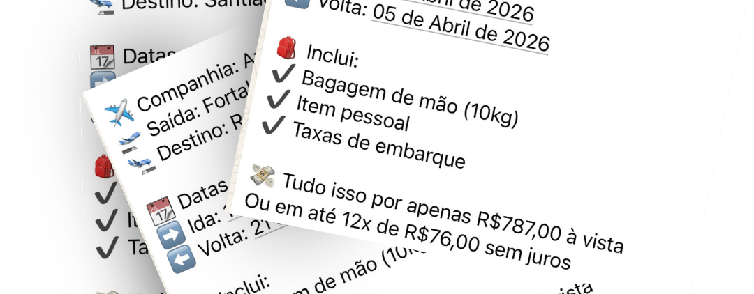 Somos uma agência de viagens completa, especializada em passagens aéreas com saída de Fortaleza, mas com atendimento para todo o Brasil.